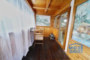 Chata je ve velmi dobrém stavu, s řadou nedávných úprav – nově zrekonstruovaná koupelna s toaletou, kuchyně s novou kuchyňskou linkou, světlý obývací pokoj, zasklená veranda a prostorná ložnice. V přízemí byla položena nová podlaha. Vyměněna byla také okna za plastová.