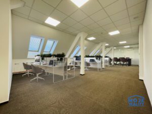 Prostory se nachází v nejvyšším patře budovy, jsou klimatizované a jsou členěny do několika samostatných kanceláří, dvou velkorysých sdílených open space prostorů, zasedací místnosti, kuchyňky, jídelny/odpočinkové zóny a skladu.